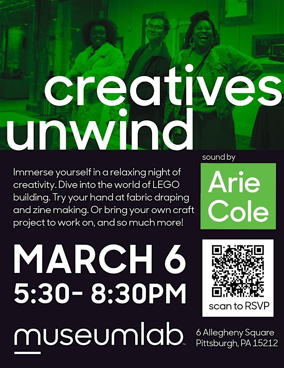 Immerse yourself in a night of artistic exploration and relaxation as you enjoy beats from a talented DJ and savor delicious food and drinks. Bring your own craft project to work on, or simply unwind and mingle while exploring the various creative activities MuseumLab has to offer. Dive into the world of LEGO building, try your hand at fabric draping, unleash your creativity with zine making, and so much more! Plus, don’t miss a special showcase of exhibits prototypes developed through MuseumLab for Museum Professionals, featuring innovative exhibits created by program participants from around the country—a unique chance to see early-stage ideas come to life! This is an evening dedicated to sparking inspiration and fostering a sense of community through art. Don’t miss out on this unique opportunity to unwind creatively at MuseumLab!