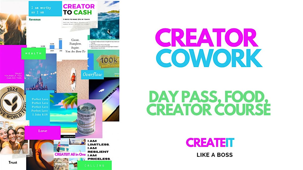 oin us for Creator CoWork, an immersive co-working experience designed for entrepreneurs, creators, and CEOs who are ready to level up their content, connections, and cash flow in Baliβs most inspiring spaces!