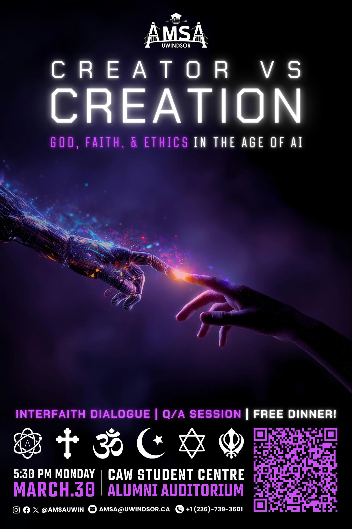 Interfaith event on AI featuring Atheist, Humanist, Christian, Hindu, Jewish, Muslim, and Sikh perspectives. Featuring Q/A & free dinner!!!