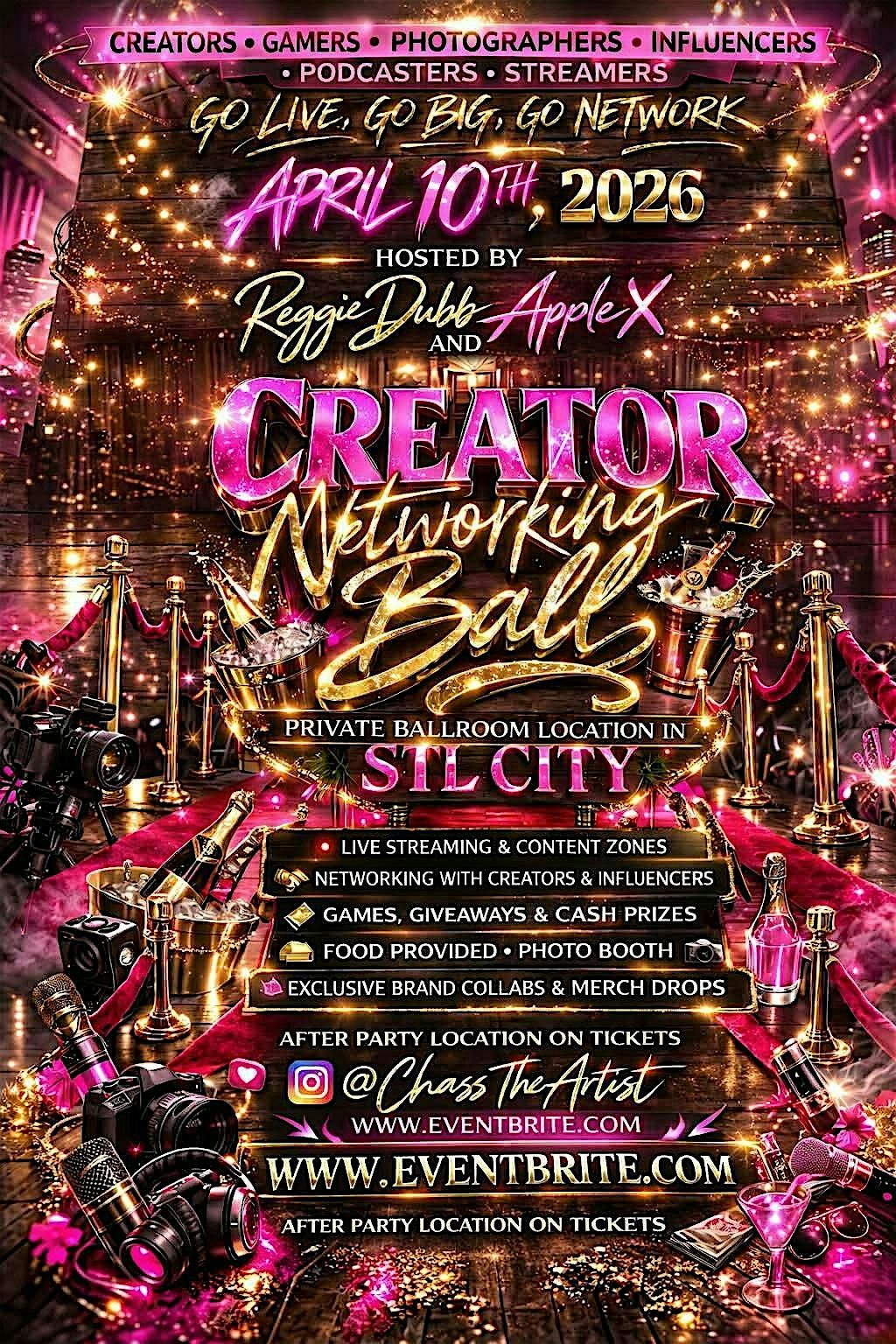 Welcome to CREATORS BALL! Get ready to experience a night full of creativity and inspiration at St. Louis. Join us on April 10, 2026 at 6:00 PM (Central Time) for an unforgettable event. Let's celebrate the power of creativity together in this vibrant city. Don't miss out on this opportunity to connect with fellow creators and immerse yourself in a night of art and innovation. See you there!