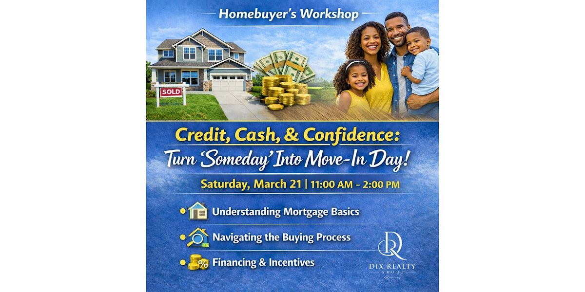 Whether you’re just starting to think about buying or you’re ready to make moves this spring, this seminar will help you build the credit, cash, and confidence you need to take your next step.