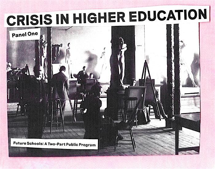 Moderated by co-curator of Future Schools, Nato Thompson, former Dean of Columbia University School of the Arts, Carol Becker, and artist, writer, and faculty member of The Cooper Union, Doug Ashford will ask what must be protected, what must be reimagined, and what must be allowed to change. Rather than describing the crisis as a single story, the panel will surface multiple perspectives and lived experiences, creating a clearer picture of the forces reshaping higher education today. The aim is not to mourn the university but to understand the moment with clarity and to consider what a more humane, equitable, and sustainable educational future might require.