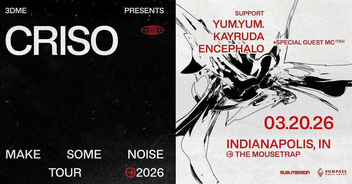 Criso plus a special MC guest and support from yum.yum, Kayruda and Encephalo all at The Mousetrap to bring you a night of high vibes and heavy bass!