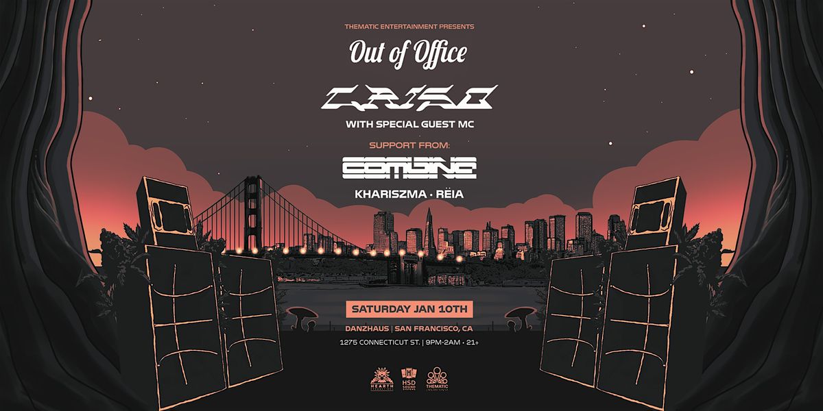 Out of Office is a recurring gathering for bass music enthusiasts, dance happy audiophiles, and the community at large, to unite and express! This is a safe and welcoming environment for all to get loose and celebrate the art and people we love.