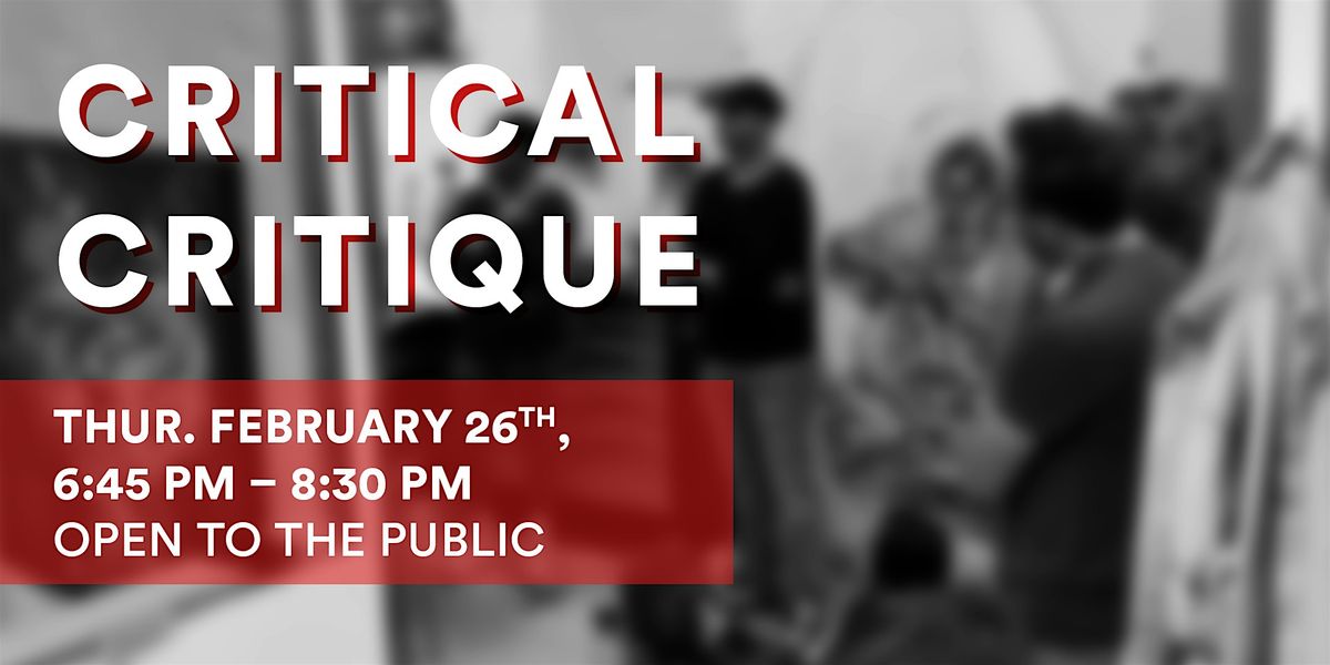 While potentially blunt, Critical Feedback Sessions serve to provide unfiltered and honest feedback regarding conceptual, contemporary, or formal aspects of artworks being discussed. Conversations will center more on viewer reactions and feedback rather than artist’s explanation. Presenting artists may present up to 3 works either in progress or completed.