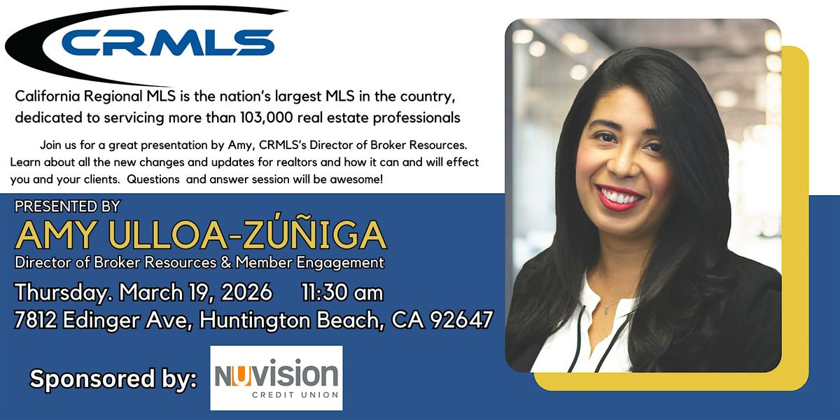 Join us for a great presentation by Amy, CRMLS’s Director of Broker Resources.Learn about all the new changes and updates for realtors and