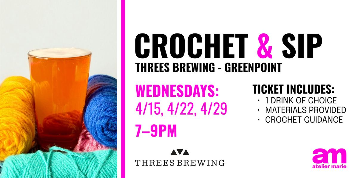 Join us for a cozy evening of crochet and a drink of choice at Threes Brewing in Greenpoint!