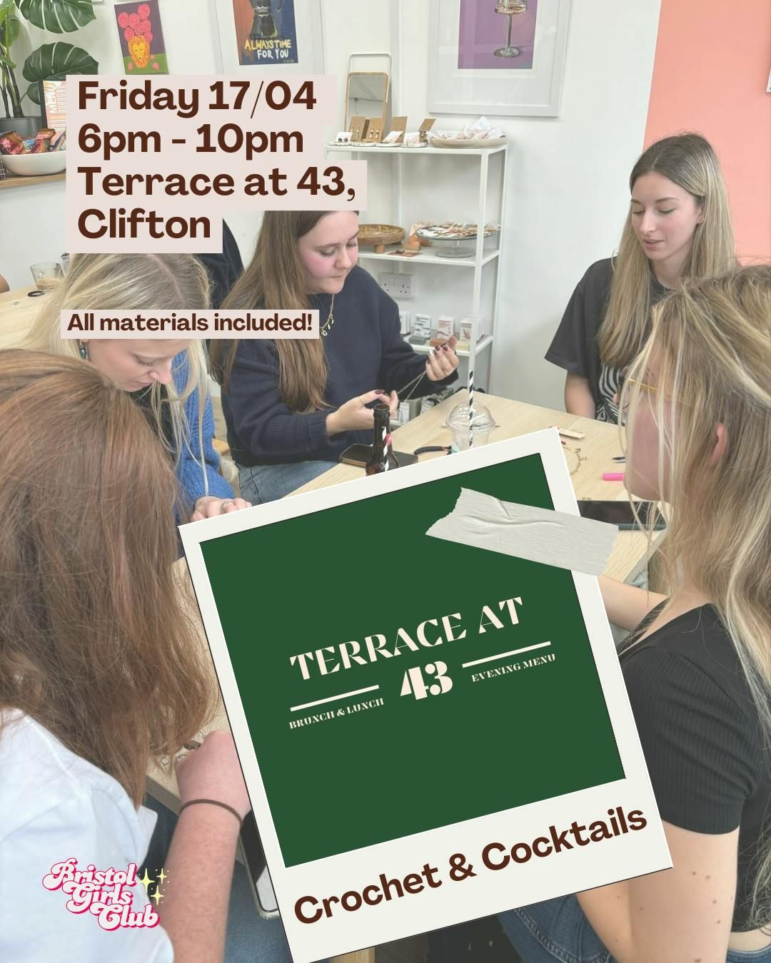 An evening of drinks and learning how to crochet! Everything included in ticket price to make your crochet piece (and keep your yarn after to finish it off)