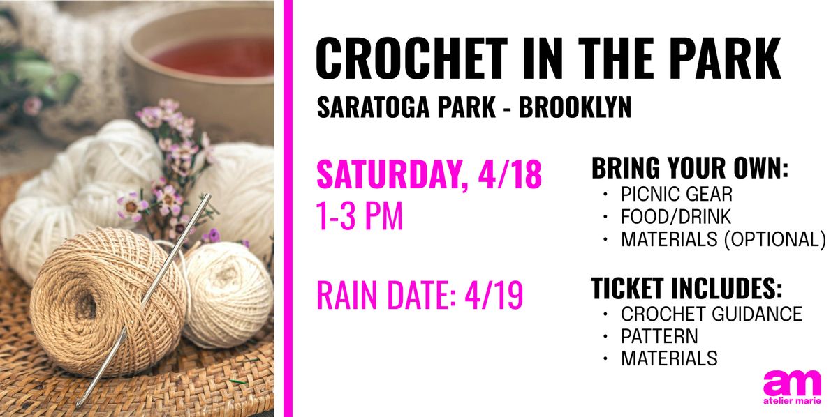 Join us for a cozy afternoon of crochet at Saratoga Park in Brooklyn! Located at the Bed-Stuy/Bushwick borderline.