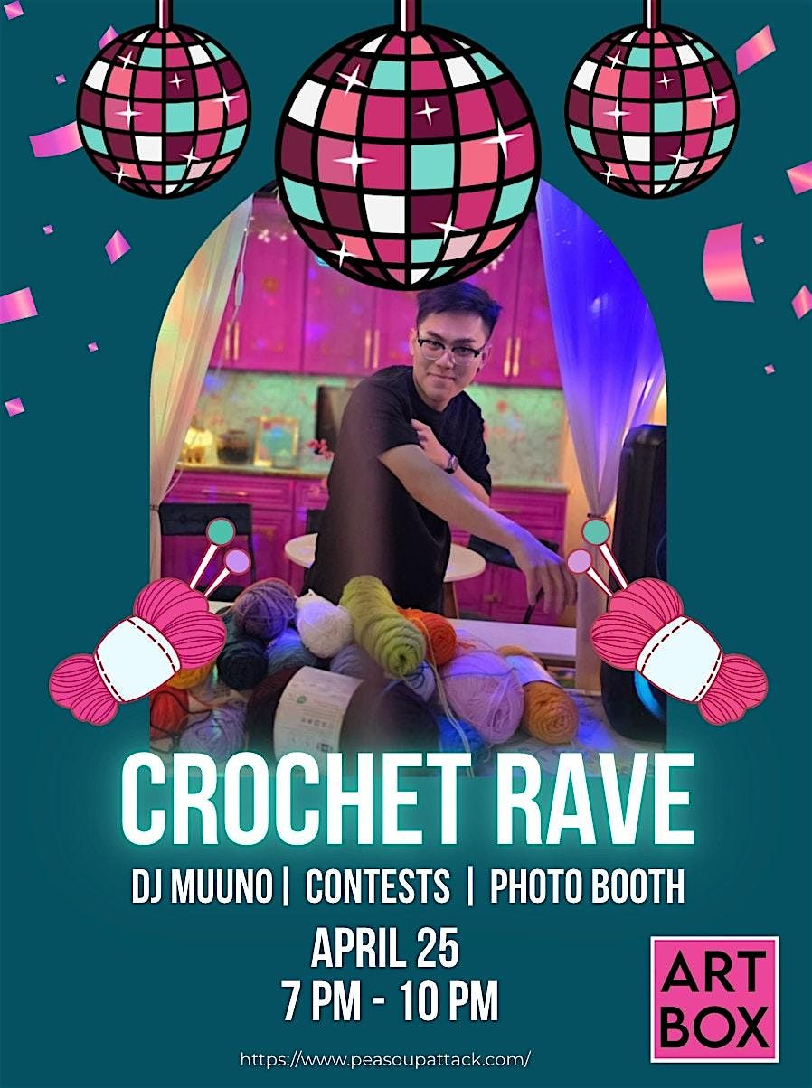 Bring your yarn, your friends, and maybe a few dance moves… This crochet rave is where music meets making. We’ll have a live DJ, a photobooth to capture the night, and a granny square crochet competition!