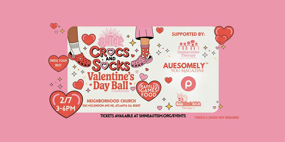 Crocs and Socks is SHINE’s signature Valentine celebration created for families of all abilities to come together in a fun sensory friendly way. This one of a kind dance invites guests to show up comfy and confident in their favorite crocs or cozy Valentine's Themed socks while enjoying a night filled with music movement and joy.