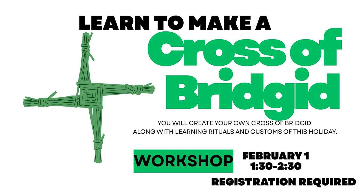 Come and learn about the Cross of Bridgid and celebrate Imbloc-a Celtic festival marking the mid point between winter and spring.