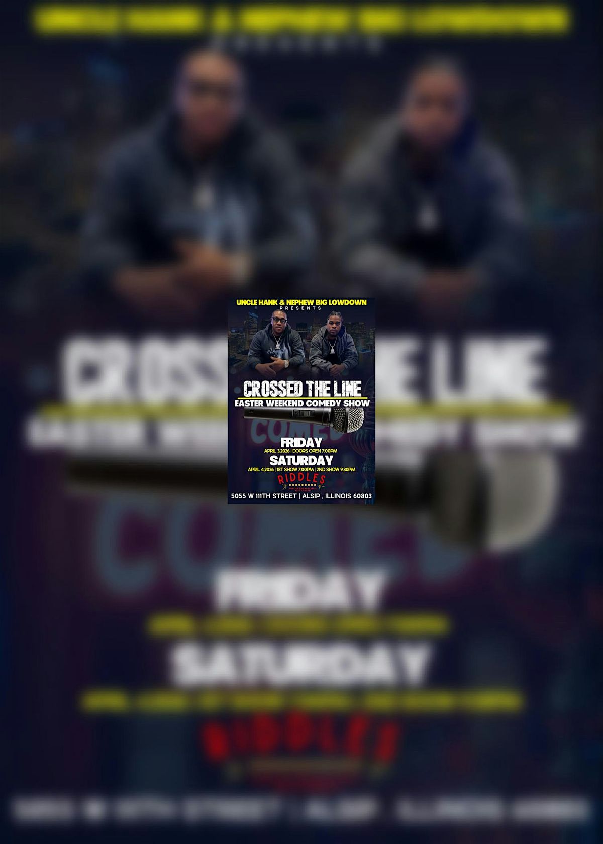Get ready for a weekend of nonstop laughter at the “Crossed the Line” Easter Weekend Comedy Show, presented by Uncle Hank and Nephew Big Low Down! This high-energy comedy experience brings bold jokes, real-life humor, and unforgettable performances to the stage for three shows over two nights.