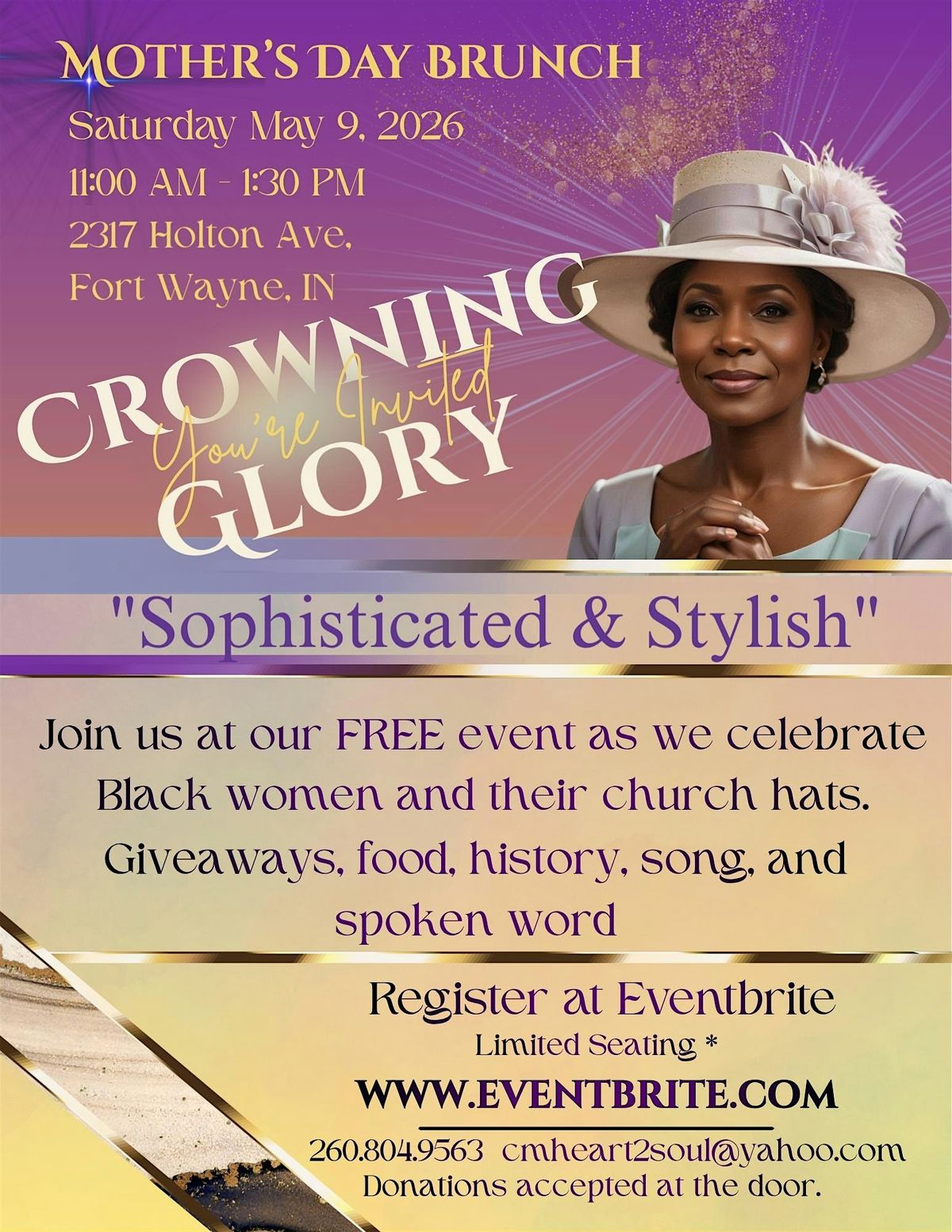 All Hail to the Queens!!! Mothers, sisters, daughters, & friends, come on out as we celebrate the wearing of the crown ('church hat' or other fancy headwear) while paying homage to those who did it best in showing us the way. Attendees are highly encouraged to wear their hats or fascinators and to bring a photo &/or share the story of their honored loved one. Learn some of the history for donning of the church hat. Be inspired, enjoy good food, song and spoken word while being sophisticated & stylish in your crowning glory... (free event; limited seating...)