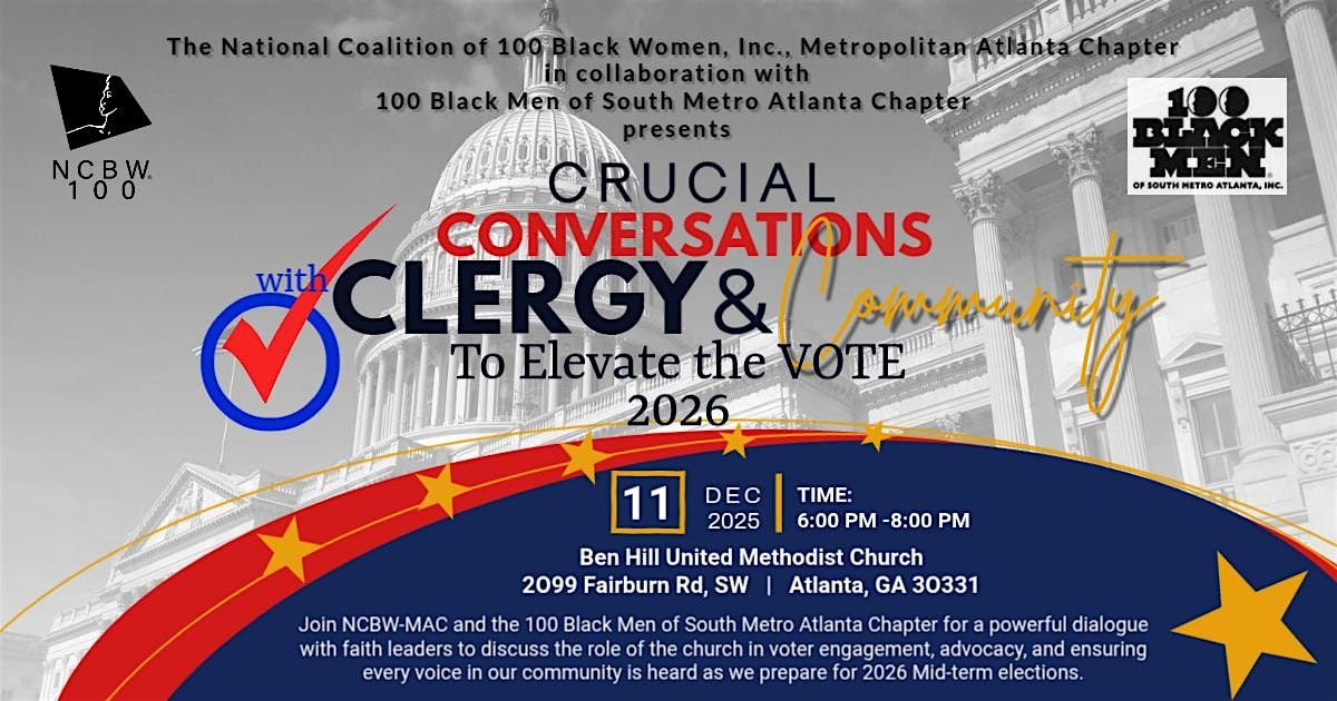Join NCBW-MAC & 100 Black Men South Metro for a dialogue with faith leaders on the church’s role in voter engagement, advocacy, and 2026 rea