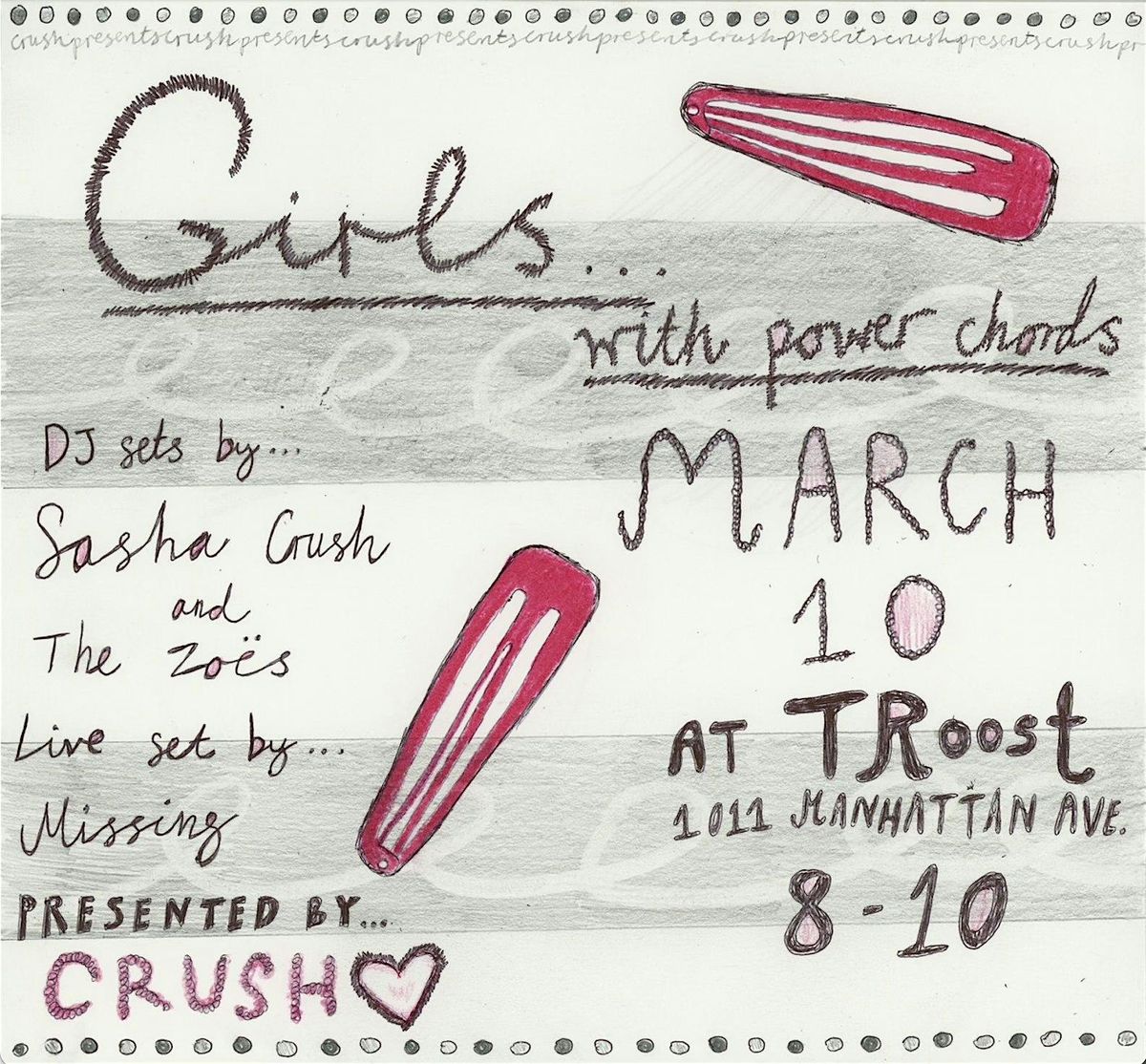 CRUSH presents Girls With Power Chords at Troost 1011 Manhattan Ave, Brooklyn NY.