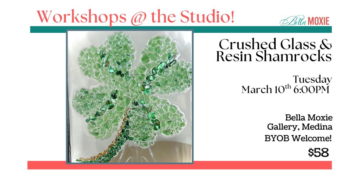 Join us in person for a fun and creative evening crafting your very own Shamrock with crushed glass, genuine sea glass & resin! Bring your friends or come solo to unwind, get crafty, and create for St Patty's Day. Perfect for all skill levels, this event is all about enjoying the process and leaving with a unique piece of art. Come get inspired and let your creativity shine!