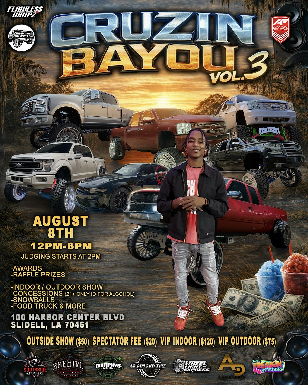 Get ready to roll with us for CRUZIN THE BAYOU VOL.3—good vibes, cool rides, and bayou breezes!About this Event