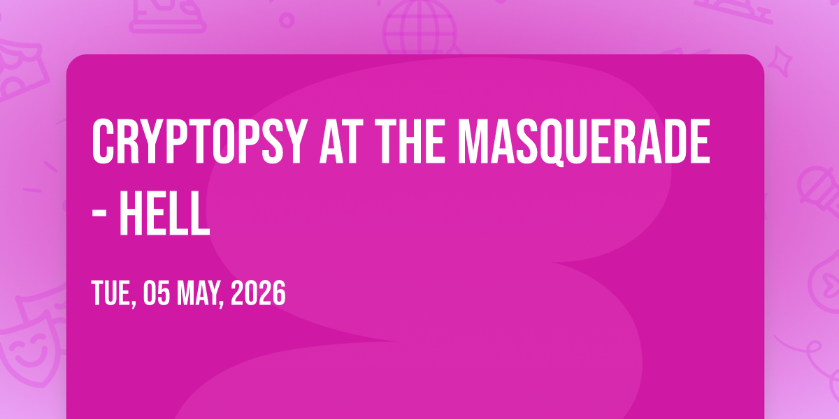 ✨ Discover the extraordinary at Cryptopsy at The Masquerade - Hell, where magic meets reality in ways you've never imagined! 🏛️ Set in The Masquerade - Hell nestled in bustling Atlanta, GA, this event promises to be a landmark occasion. 📅 Taking place on May 5th, 2026 at 06:00 PM, it's going to create an atmosphere where every moment becomes a cherished memory. 🌟 Immerse yourself in an experience crafted with attention to every detail, designed to surprise and delight at every turn. They have worked tirelessly to ensure this event exceeds all expectations, bringing together elements of entertainment, innovation, and pure joy. 🎊 Don't miss your chance to be part of this remarkable journey!