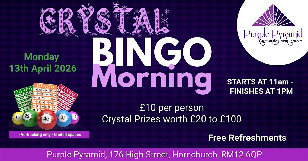 Join us for Crystal Bingo on Monday 13th April. Pre-book now! Starts 11am, finishes 1pm. £10 entry with crystals as prizes.