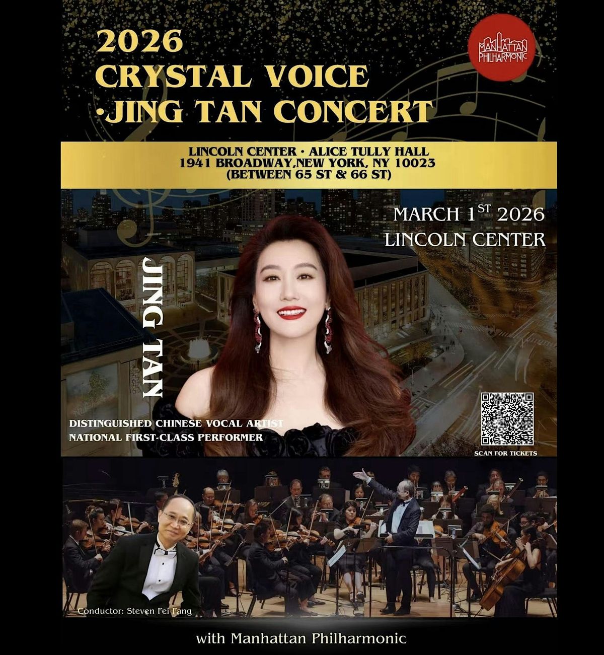 Internationally acclaimed vocalist Tan Jing joins the Manhattan Philharmonic for Crystal Voice—an immersive concert where Eastern heritage meets contemporary symphonic expression.✨