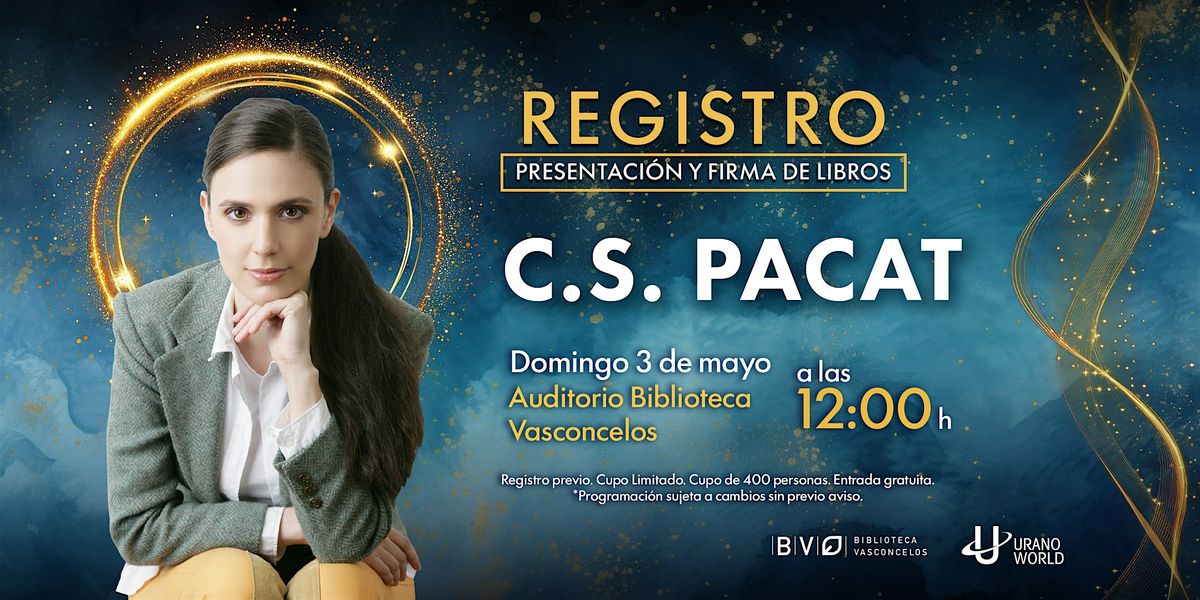 ¡No te pierdas esta gran oportunidad para conocer a C.S. Pacat y llevarte tu libro firmado! La cita es el 3 de mayo de 2026 a las 12:00 PM (CDT) en la Biblioteca Vasconcelos.