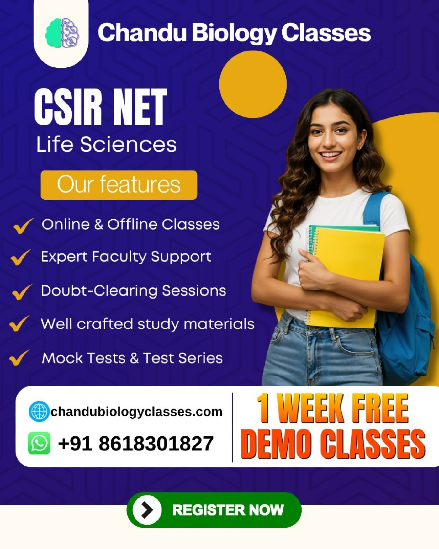 Attend 1 week of completely free demo classes for CSIR NET Life Sciences at Chandu Biology Classes. Experience our expert faculty, doubt-clearing sessions, and structured syllabus — before you commit.