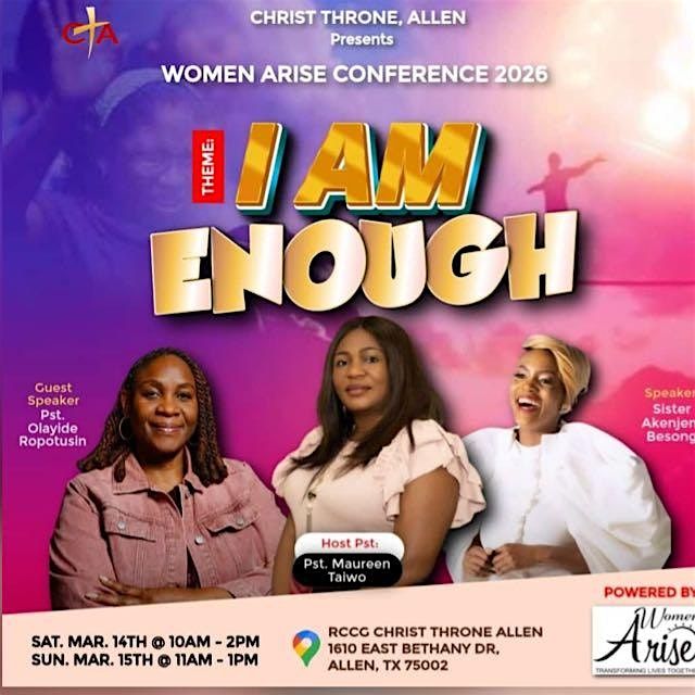 Hey there! Join us for CTA Women Arise 2025 happening on March 14, 2026 at 10:00 AM (Central Time) at Christ Throne Allen Church located at 1610 E Bethany Dr. It's a great chance to connect, inspire, and empower. Don’t miss out on this awesome in-person event where amazing things happen!