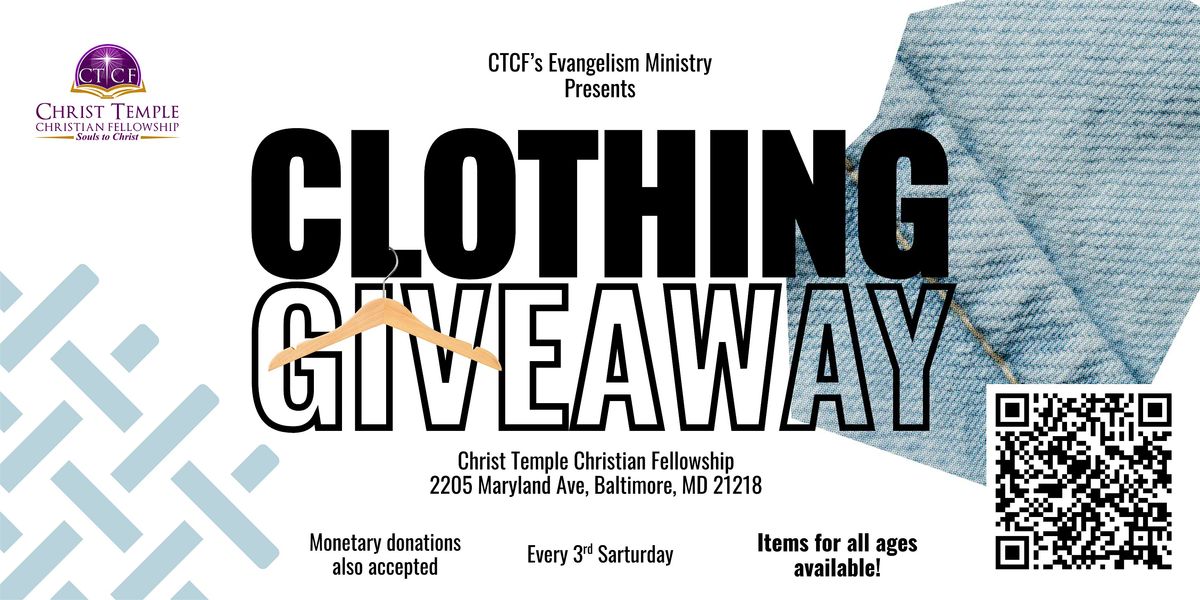 Join us for our monthly Clothing Giveaway!
