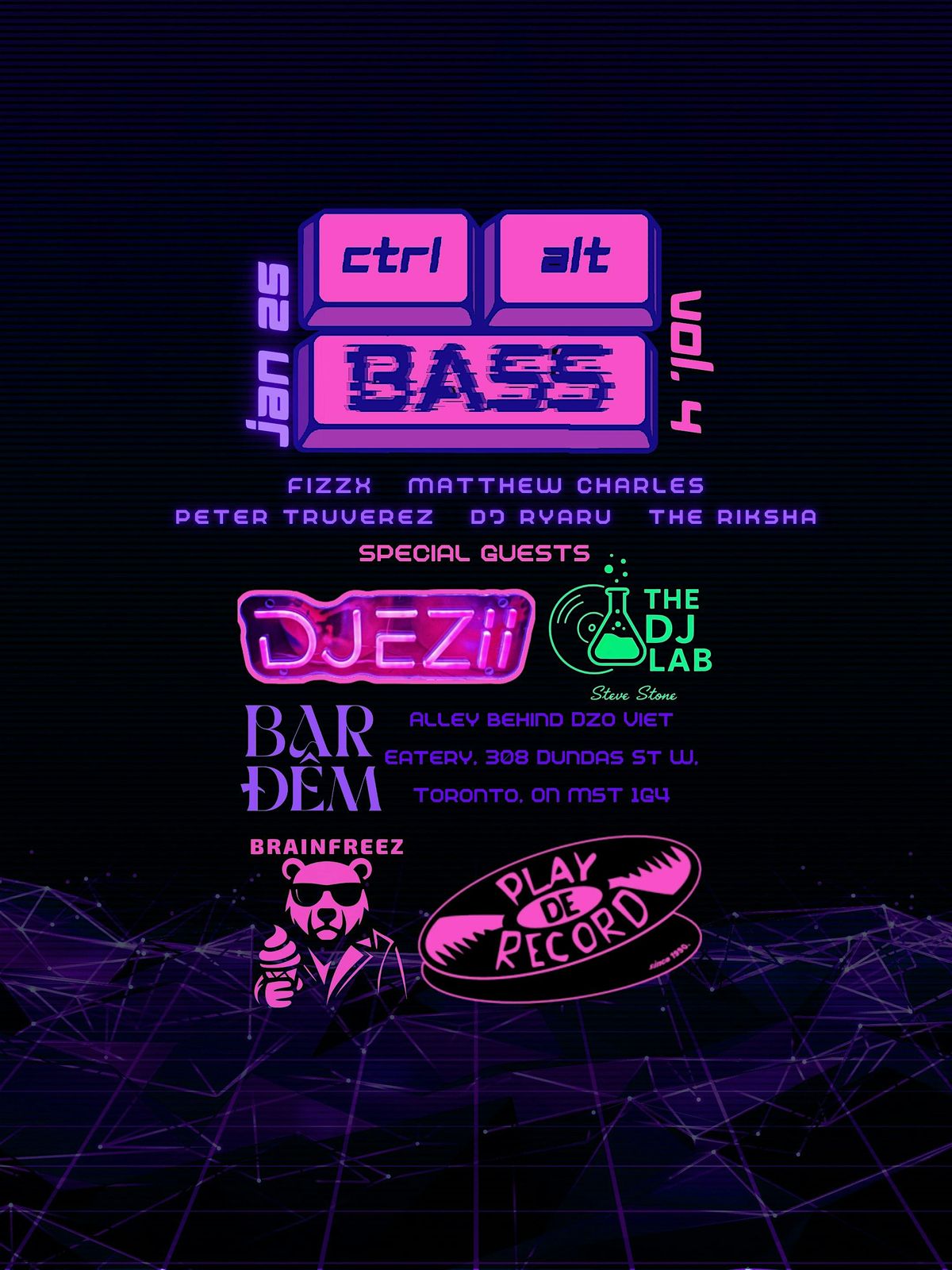 Toronto’s bass scene was overdue for a proper monthly Sunday night — so Brainfreez gave it a system reboot and built one. CTRL ALT BASS returns Decemeber 21st, 9PM–1:30AM at Bar Dem (308 Dundas St W *behind Dzo Viet Eatery), bringing cutting edge drum & bass, dubstep, jungle, and UKG to the heart of the city.
