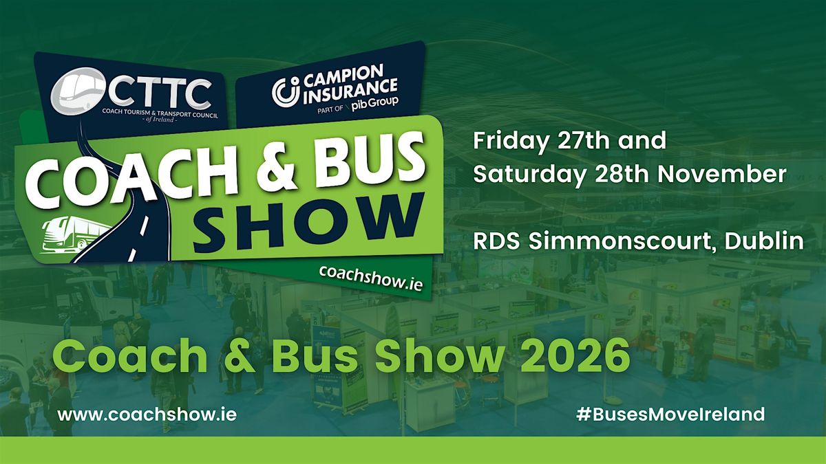 The 13th biennial CTTC Coach and Bus Show 2026 – sponsored by Campion Insurance – will be held on Friday 27th and Saturday 28th of November 2026 at the RDS, Simmonscourt Pavillion, Dublin.