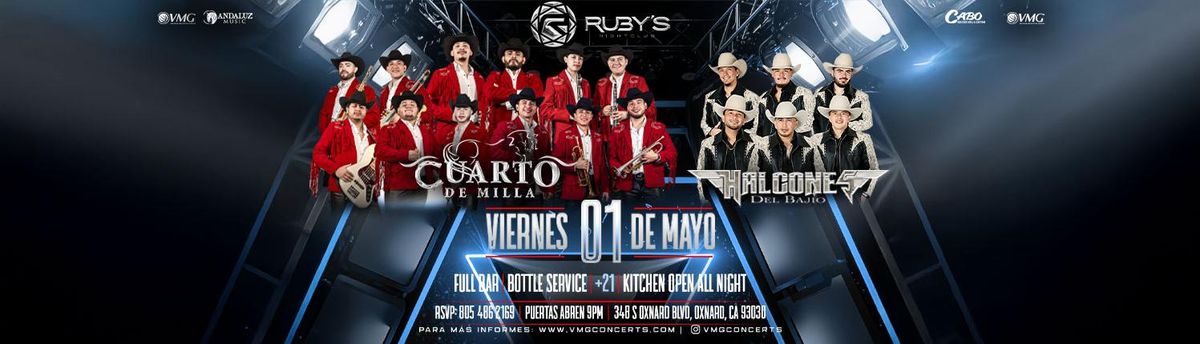**Attend CUARTO DE MILLA & HALCONES DEL BAJIO at Ruby`s Night Club, Oxnard, CA, United States** Join us for CUARTO DE MILLA & HALCONES DEL BAJIO. It's going to be a fun and relaxed event with great music and good company. A perfect way to spend your evening. **Event Details:** * **Location:** Ruby`s Night Club, Oxnard, CA, United States Register now to secure your spot at this landmark event. #CUARTODEMILLA&HALCONESDELBAJIO #event #exciting #OxnardEvents #CAEvents