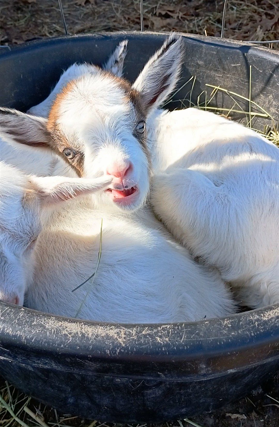 Looking for a super cute way to spend your day? Join us in person for a cuddle playdate with the sweetest baby goats around! It's all about fun, furry friends, and tons of smiles. Perfect for animal lovers and anyone needing a little dose of happiness. Come hang out, pet those soft little guys, and make some unforgettable memories!