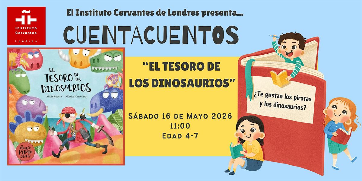 Join us for a fun storytelling session where we will read The Treasure of the Dinosaurs, the story of little pirate, Serafín, and his exciting adventure on an island full of dinosaurs.
