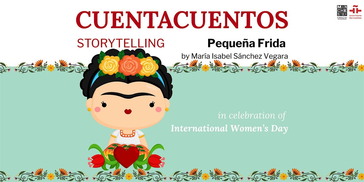 El Instituto Cervantes de Manchester continúa su programa de promoción de la lectura infantil. Esta sesión en celebracion del Día Internacional de la Mujer, leeremos 'Pequeña Frida', por María Isabel Sánchez Vegara. Con 'Pequeña Frida' comenzamos un ciclo de tres cuentacuentos dedicado a grades figuras de la creación artística en el mundo hispano.