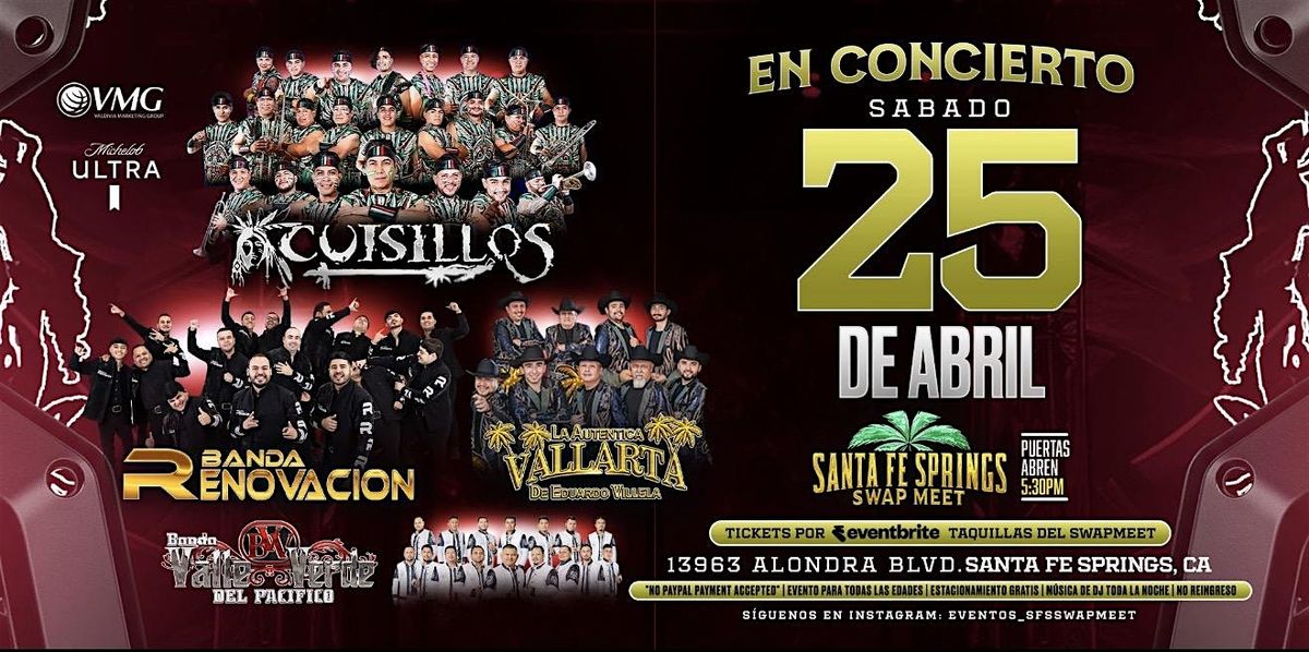 Santa Fe Springs Swap Meet presenta Cuisillos, Banda Renovación, Auténtica Vallarta y Banda Valle Verde.About this Event