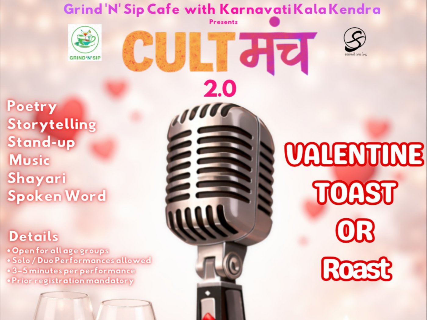 #CultManch #KarnavatiKalaKendra #ValentineEvent #OpenMicAhmedabad #ToastOrRoast
