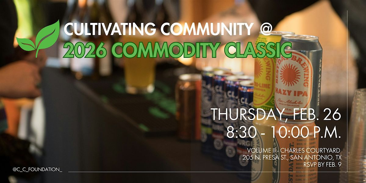 Join the Cultivating Change Foundation for our San Antonio Cultivating Community Regional Networking Event during the 2026 Commodity Classic on February 26, 2026 and enjoy your night cap on us!
