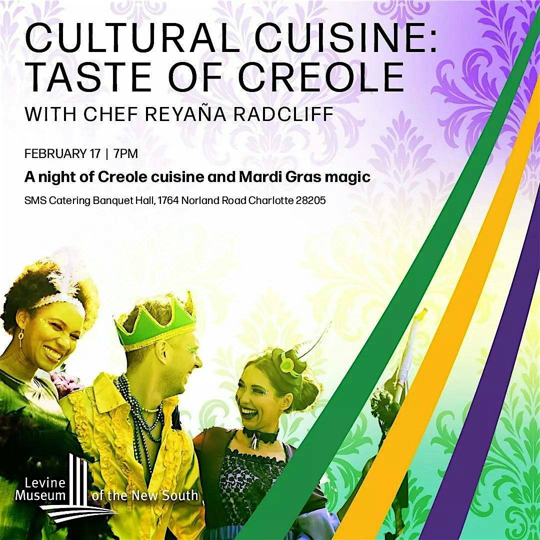 Dress in your favorite Mardi Gras-inspired outfit or cocktail hour attire, adorned with colorful beads and masks, as we escape into a night of music filled Mardi Gras-themed fun. Chef Reyaña Radcliff, a New Orleans native based in Charlotte, will take your palate on a journey through vibrant food stations offering Creole classics and creative twists.