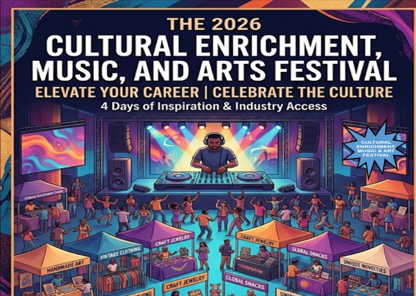 Elevate your career while celebrating the culture. The 2026 Cultural Enrichment, Music, and Arts Festival is a one-of-a-kind immersive experience designed to be both a vibrant community celebration and a powerful career catalyst. For four days, the Cultural Enrichment Center transforms into a dynamic hub where the raw energy of a street festival meets the strategic networking of a professional industry summit.