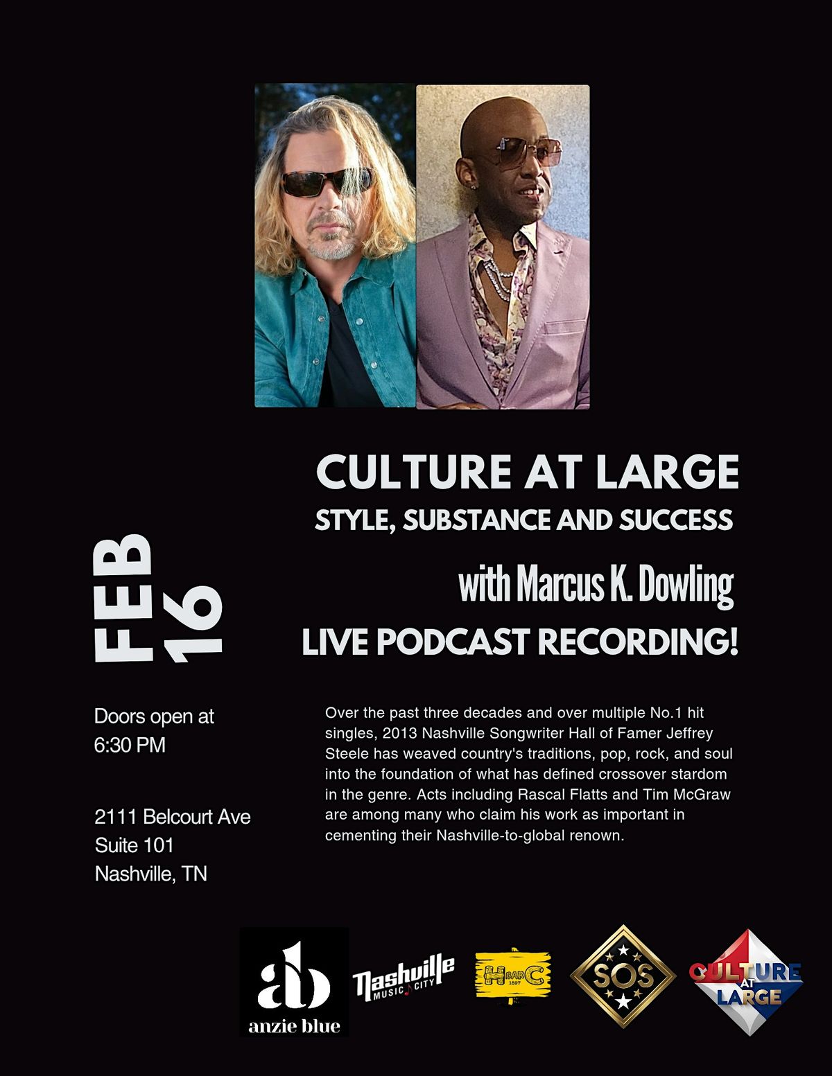 Mon, 16 Feb at 07:15 pm CULTURE AT LARGE PODCAST TAPING — SEASON 2, EPISODE 6
