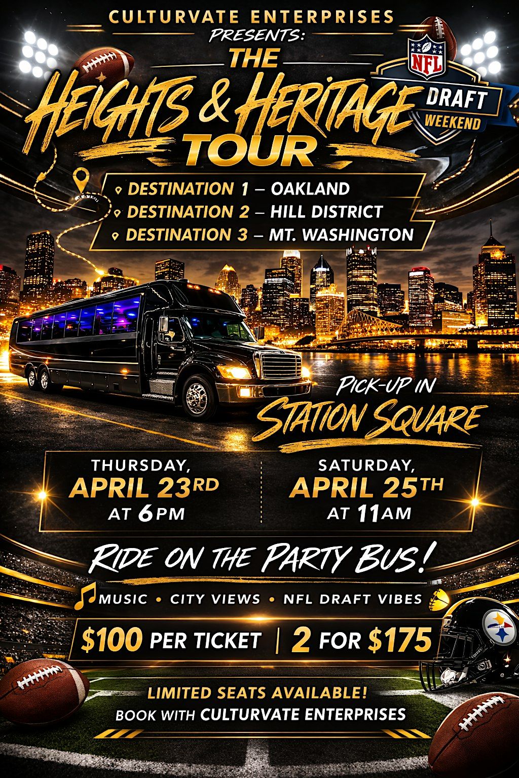 Pick Up at Station Square on April 23, 2026 at 6:00 PM and April 25th at 11am
