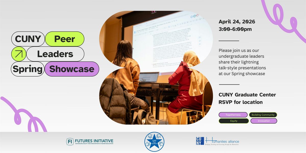 On Friday, April 24th, the CUNY Peer Leaders are offering a chance for a preview of their projects. There will be short presentations of the projects with a Q&A at the end of the showcase from participants.