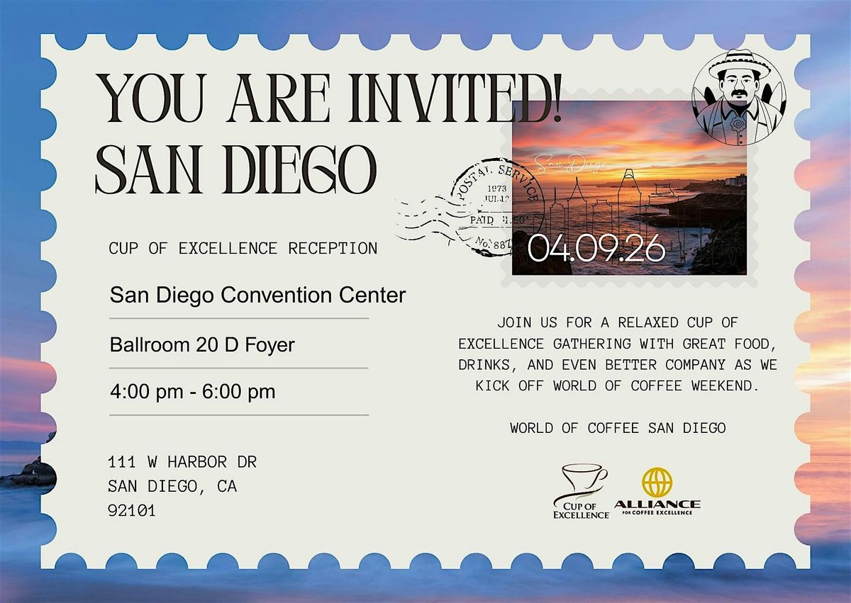 Join us for a relaxed Cup of Excellence gathering with food, drinks and even better company as we kick off the World of Coffee San Diego weekend. We will be celebrating our friends in specialty coffee from 4:00-6:00 pm in Ballroom 20 D Foyer of the The San Diego Convention Center. See you there!