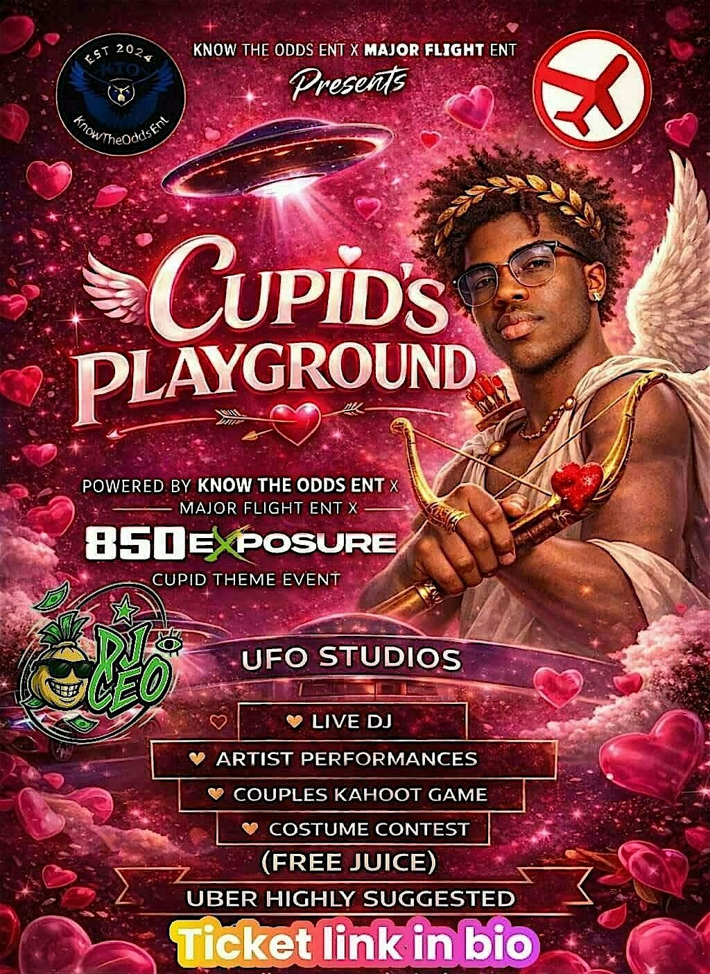 Know The Odds Ent x Major Flight Entertainment present Cupid’s Playground, a Valentine’s-themed party experience for couples, singles, and groups — bringing together good music, games and contests, live performances, and positive vibes for a memorable night.