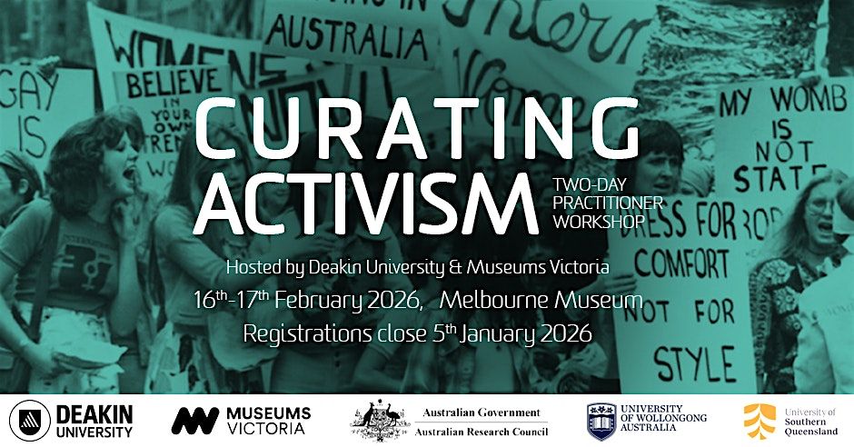 How do activist histories enter our museums, libraries, and archives? Who decides what is kept, catalogued, and displayed and whose voices are missing? This two-day workshop will bring together curators, archivists, collection managers, and heritage practitioners from across the GLAM sector to explore how activist histories are collected, documented, and displayed in Australian institutions. Through practitioner-focused discussion, participants will reflect on past and present practices while collaboratively imagining future collection strategies that prioritise activist agency, address historical gaps, and broaden the visibility of diverse social movements.
