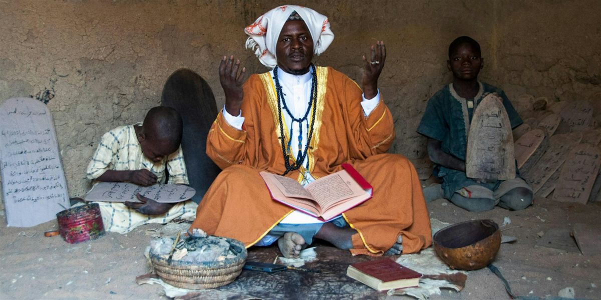 Image credit: Hamdia Traoré (Malian, born 1992), Alphamoye Traoré, Marabout et Maître Coranique. Djenné-Algassouba (Alphamoye Traoré, Marabout and Qur’anic Teacher. Jenne-Algassouba), from the series Des Marabouts de Djenné (Marabouts of Jenne), September 2018, printed 2023. Pigment print, 15 5/8 × 23 11/16 in. Mary and Leigh Block Museum of Art, Northwestern University, Irwin and Andra S. Press Collection Endowment Fund purchase.
