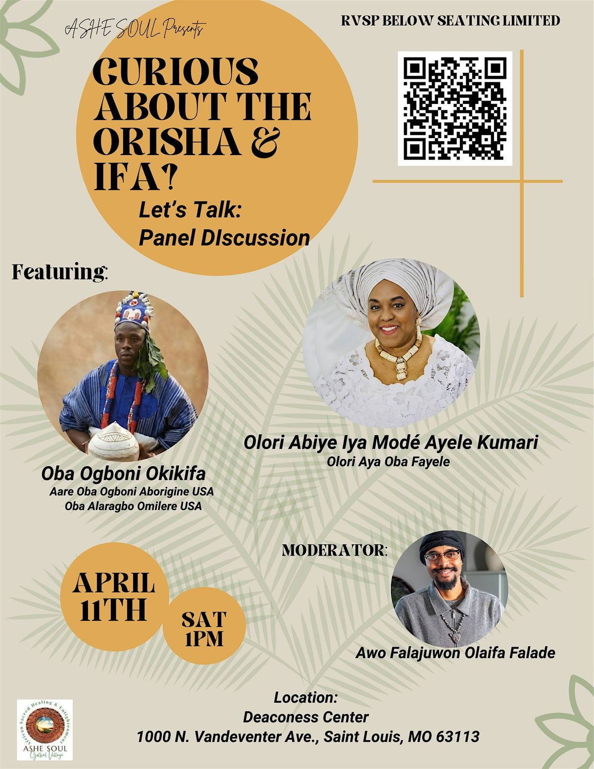 Join us for an in-person panel discussion where we dive deep into the fascinating world of the Isese tradition. Whether you're a newbie or just curious, come chat and discover more about this rich tradition. Bring your questions, your thoughts, and let's talk!