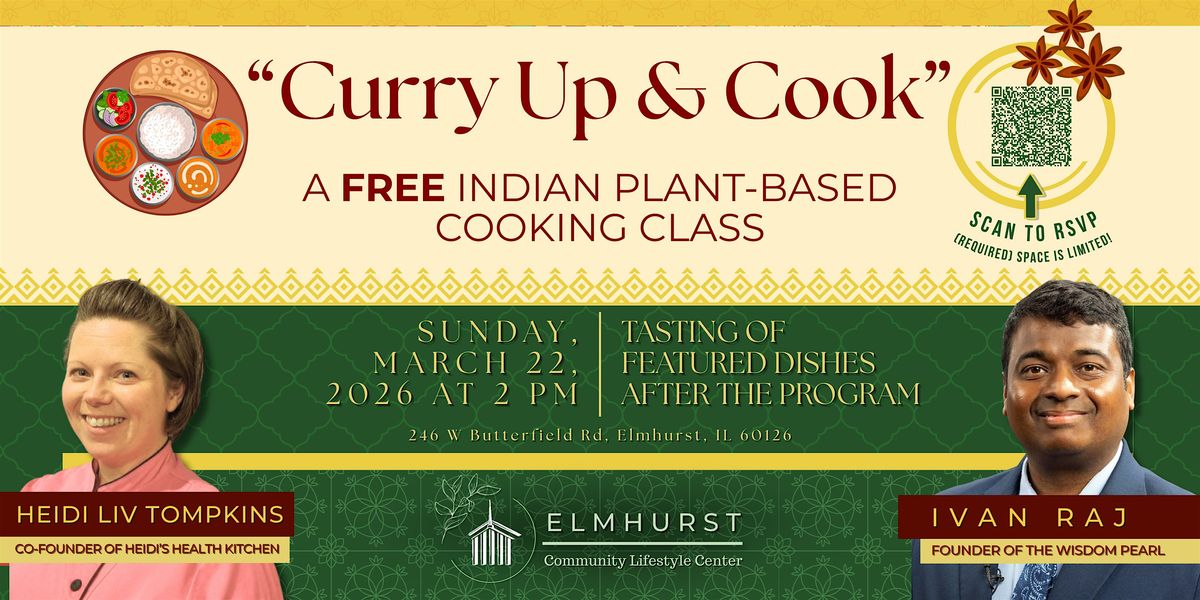Join the Elmhurst Community Lifestyle Center for “Curry Up & Cook” — a FREE Indian plant-based cooking class with live demonstrations and a complimentary tasting of featured dishes. You’ll learn practical techniques and flavor-building tips you can use at home.