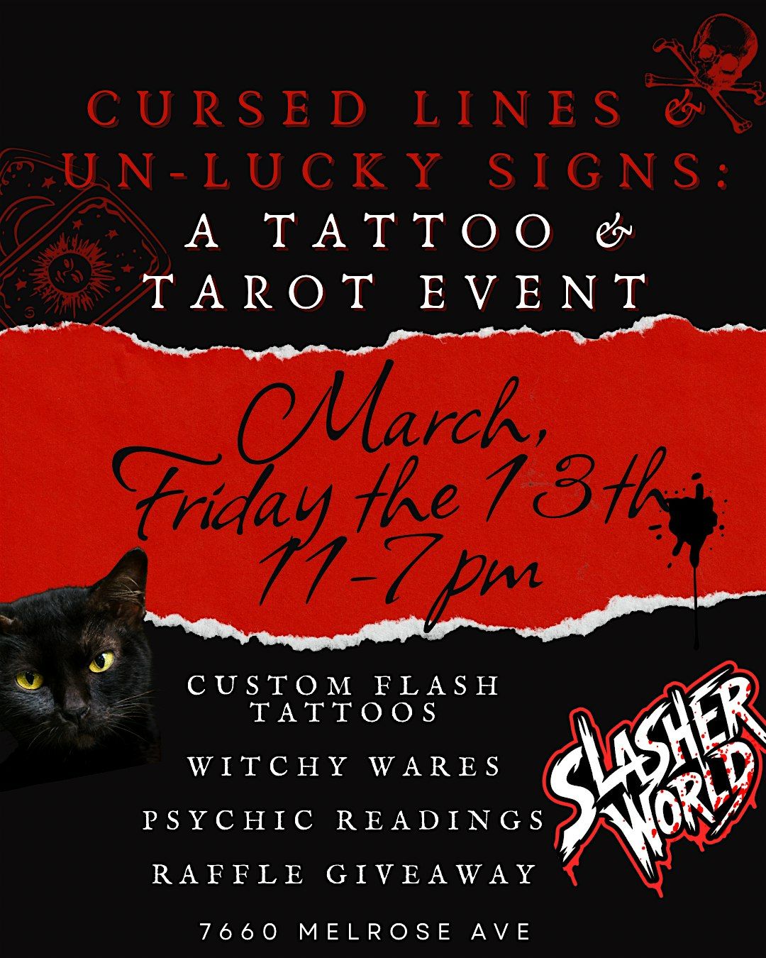 Step into the unknown this Friday the 13th for a full day of ink, intuition, and the occult inside the eerie walls of Slasher World on Melrose.